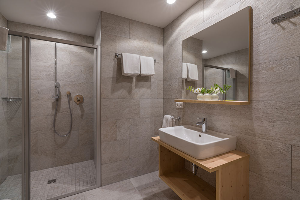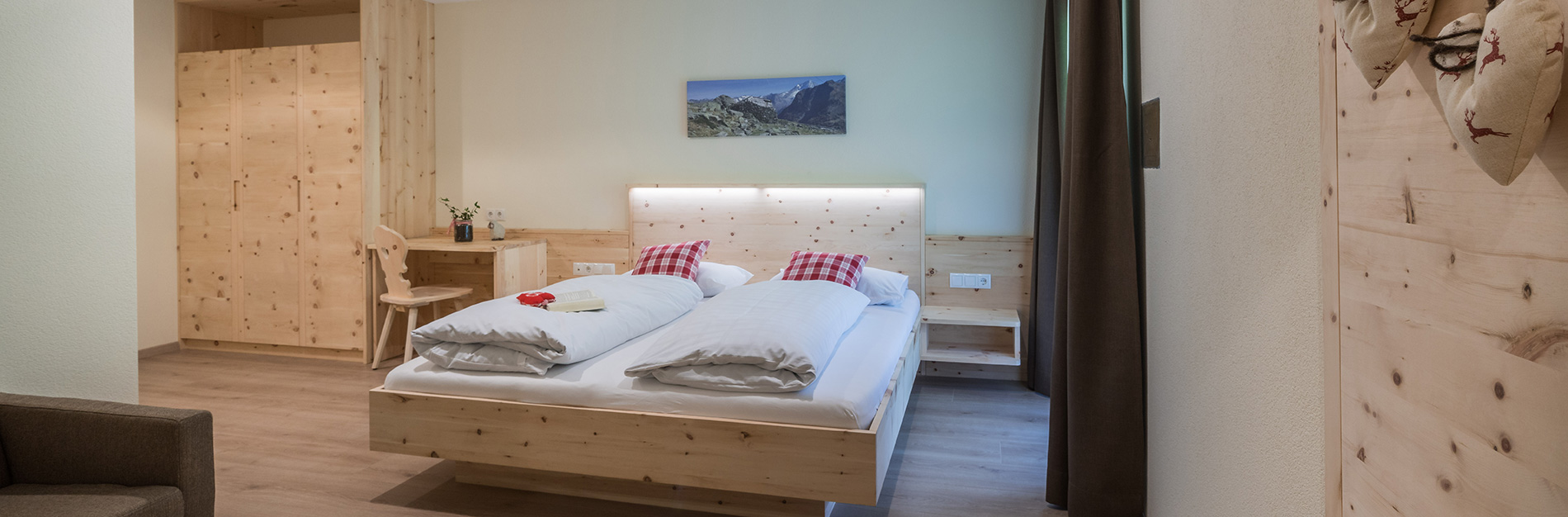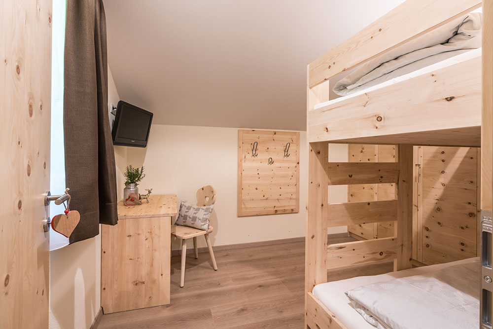 Unsere drei Family Zimmer Zirm (ca. 40-45 m²) bieten Platz für 4-5 Personen und sind mit moderner Einrichtung aus hochwertigem Zirmholz ausgestattet. Unsere Zimmer verfügen über: